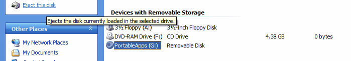 - Right-click the correct drive for the device and select Eject (or click Eject from the Windows pane).