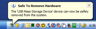 - The "Safely remove USB mass storage device" dialog bar will appear. Click that to stop the device.