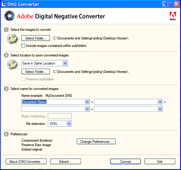 Adobe's DNG Converter. (click for larger image)