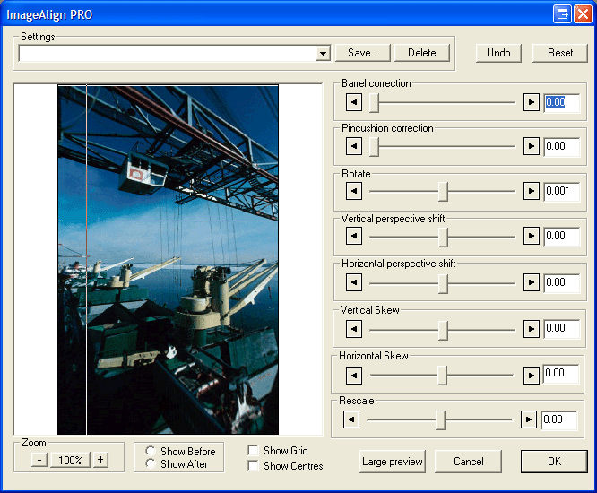 ImageAlign, from a company with the improbable name of Grasshopper, corrects both camera tilt and lens curvature distortions in a single pass. The company claims that the resultant image actually matches what the eye itself sees.