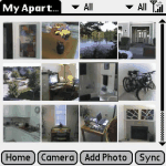 From this screen you can tap a picture to view it, return to the home screen, activate the camera to take photos and add them to the blog, add a photo already stored on the device, and synchronize your device with the blog.