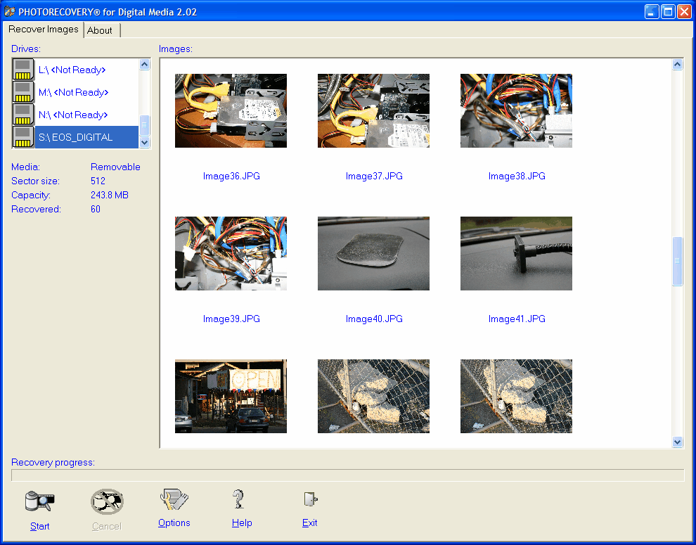 I launched the program, selected the CF card in my card reader, and let it run for about 30 minutes. As it ran, it showed thumbnails of the photos it found, as shown in Figure A.