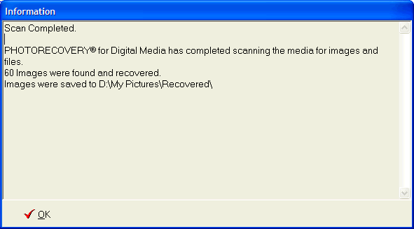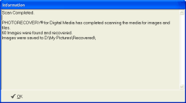 Once the program completed, it displayed the dialog shown in Figure B, indicating that it found and recovered 60 images.
