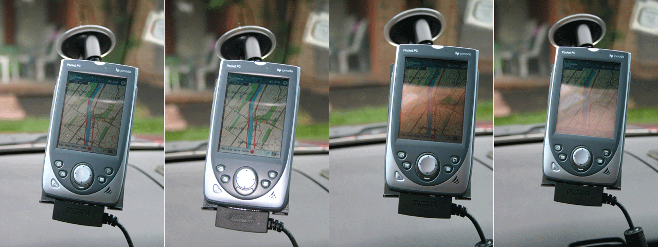 Yes, we could have done a lot more with lighting and flash. But we weren't really going for a studio shot here. In fact, this picture was really intended to illustrate that the Pocket PC was attached to a mounting bracket on the windshield, and for that, any of the pictures would do.
