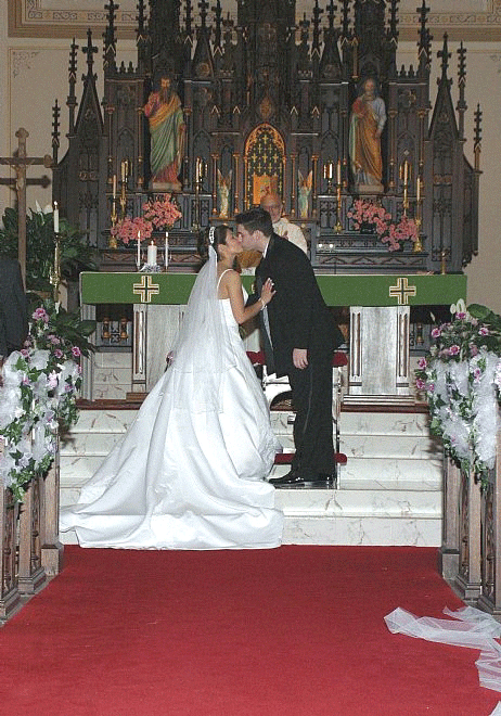 Of course, an official photo of the kiss as in Figure C. Since this is the end of the actual ceremony, the officiator will present the couple and the party will exit the chapel. Make sure to capture all of this. This is essentially the reverse of the entry, so handle it the same way and catch everyone in the party as they exit.