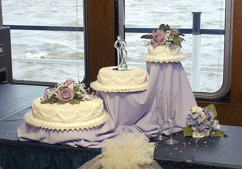You'll want to capture the bridal party as they arrive at and enter the reception. Then, generally the feeding frenzy will begin. Seeing as how you're most likely a friend or family member, which is how you got roped into this gig in the first place, you should be entitled to a little feed too. But first, get some shots of the cake, like the one shown in Figure E, and get table settings while they're still pristine.